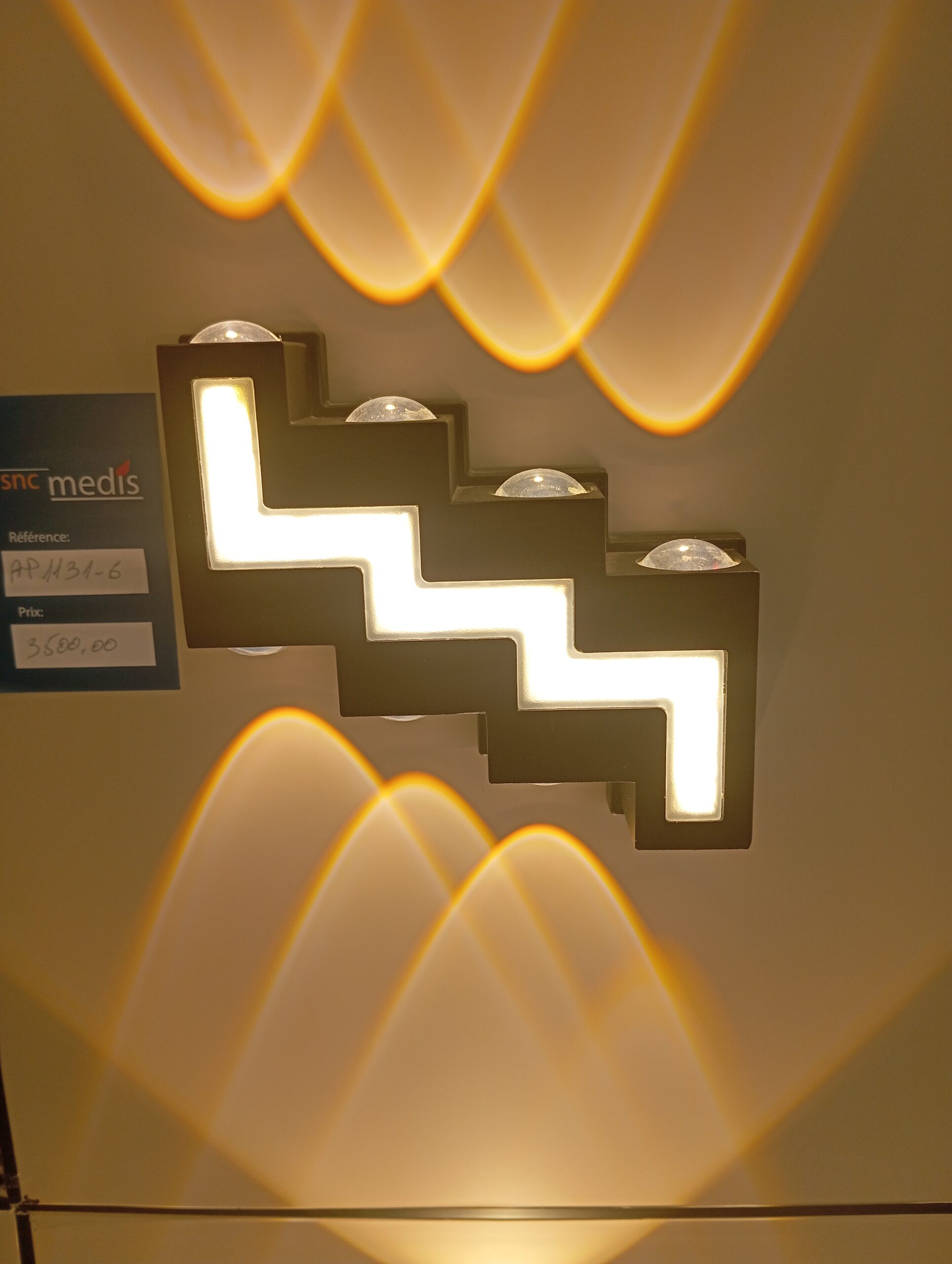 Applique murale au design zigzag moderne, offrant un éclairage décoratif et homogène. Idéale pour apporter une touche contemporaine aux salons, couloirs et espaces professionnels.